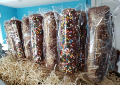 3 jumbo marshmallows coated in luscious chocolate. Your choice s'mores or party style.